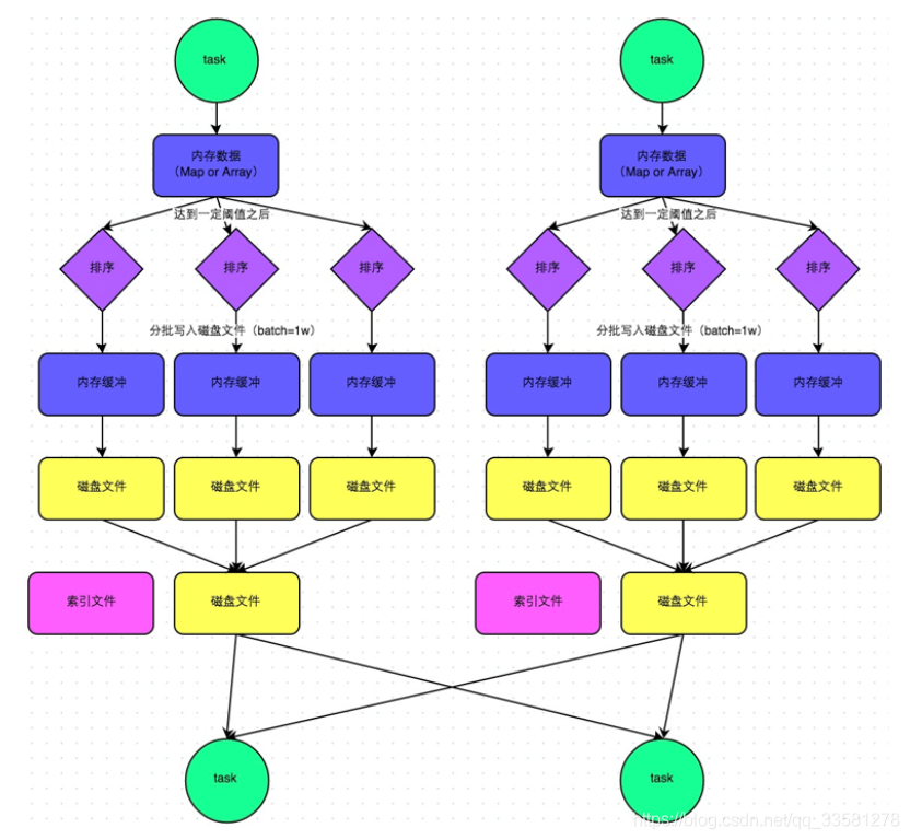 前提:不是聚合类的算子、task的数量少于spark.shuffle.sort.bypassMergeThreshold参数的值(默认200)