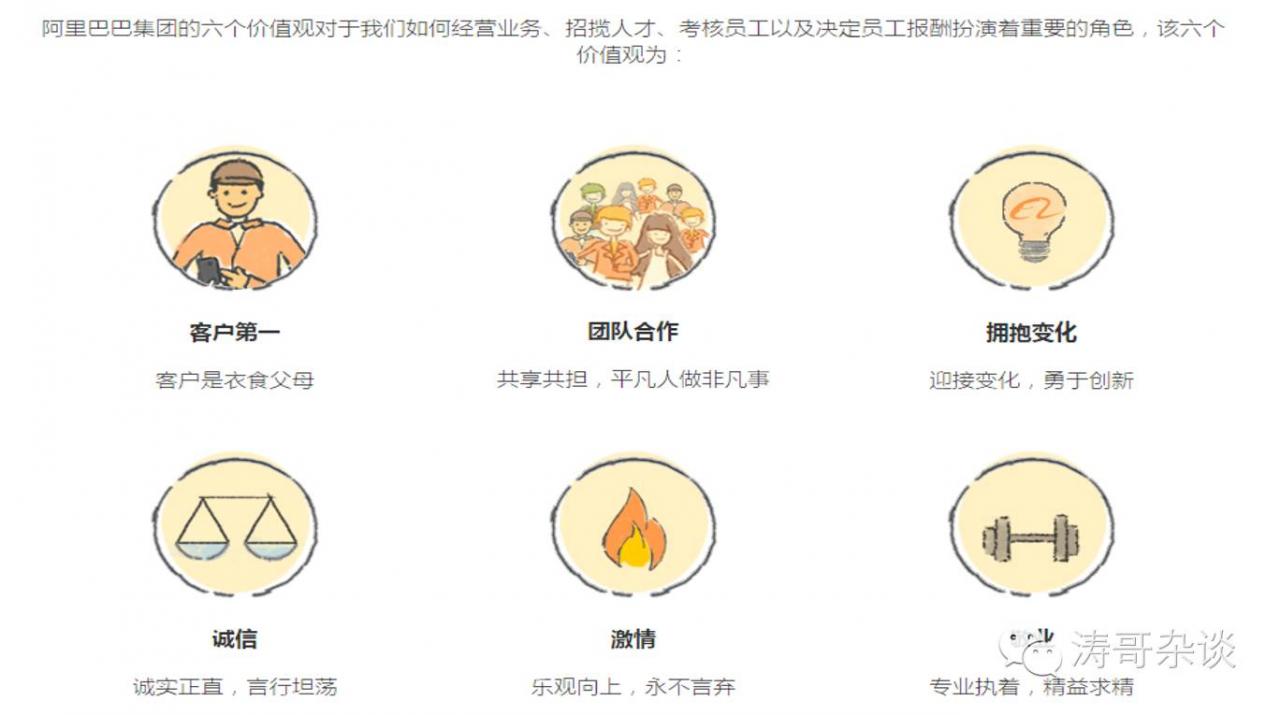 马云认为“价值观并非虚无缥缈的理念,价值观需要考核,文化是考核出来的”。阿里十多年来每个季度都考核价值观,每年的年终奖、晋升都要和价值观挂钩。员工业绩好,价值观不行,则不能被晋升。