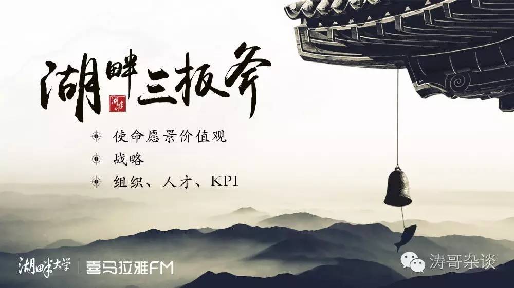 有了“使命、愿景、价值观”之后,战略的下三板斧是“人才、组织、KPI”。