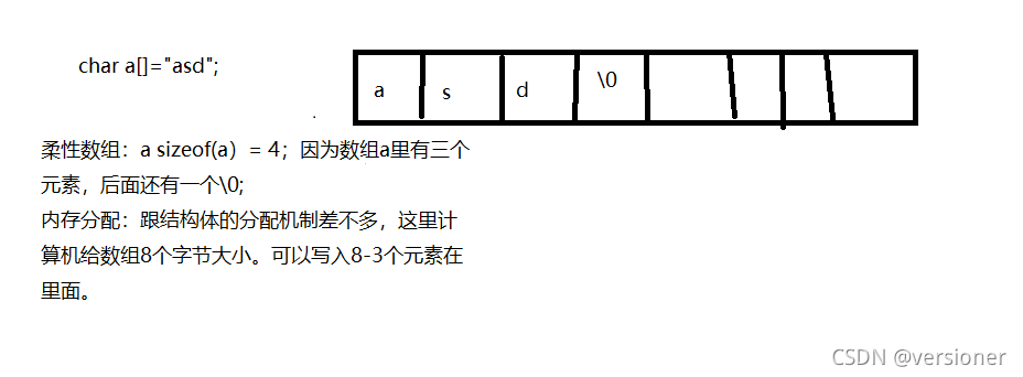 这里数组a里面有着3个元素a a d;其实后面还有一个\0。这就是为什么sizeof(a)=4的原因.