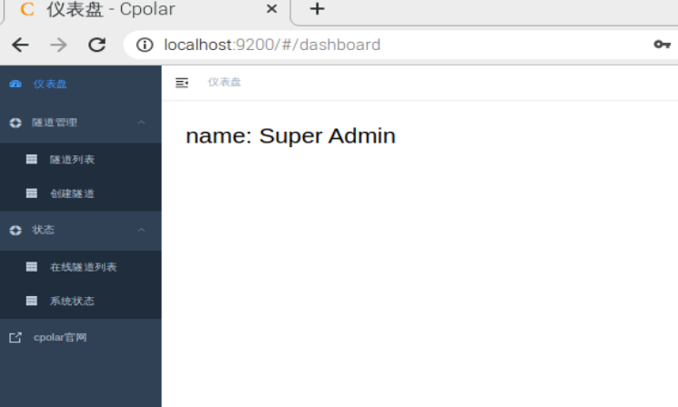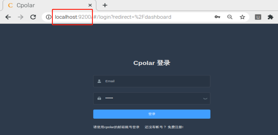 Cpolar的图形化界面,是以web-UI形式呈现的,因此我们只需要在浏览器地址栏输入“localhost:9200”,即可打开cpolar的图形化界面。