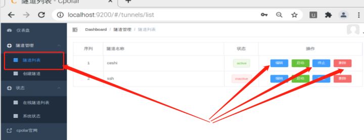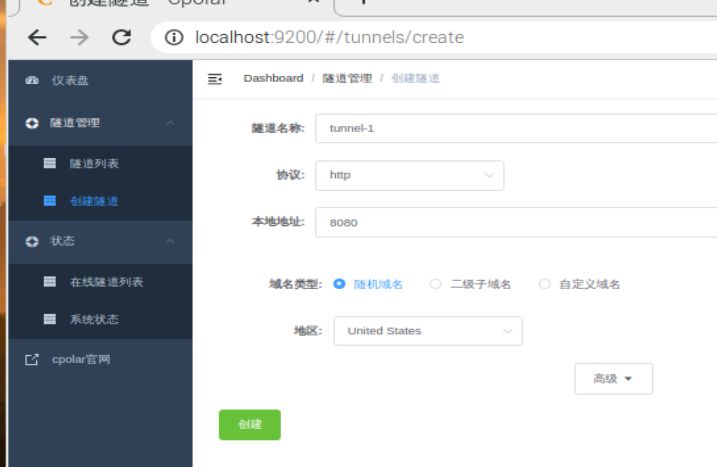 在cpolar仪表盘页面左侧,我们能看到cpolar的主要功能,而我们创建数据隧道要用到的,就是“隧道管理”项下的“创建隧道”页面