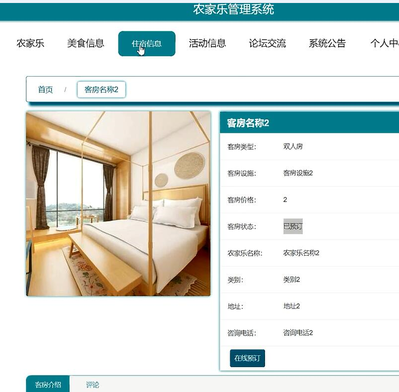 农家介绍:由管理员在后台编辑本农家乐的情况等宣传信息供客户在前台查看。