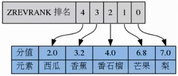 127.0.0.1:6379> ZREVRANk fruits 香蕉