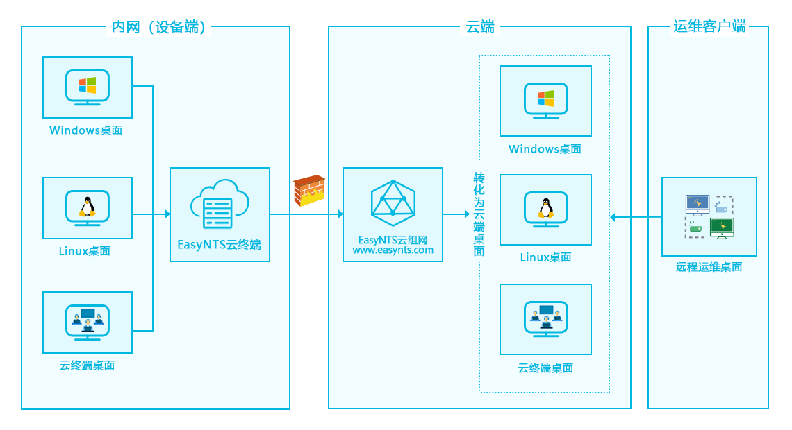 那么在网络复杂的情况下,比如内外网不通的情况下,这类需求有可以通过哪些辅助设备实现呢?其实网络不通是实现内外网交互的最大阻碍,因此我们可以从这方面入手,像EasyNTS上云网关就是一款能够很好解决网络穿透问题的辅助设备。