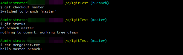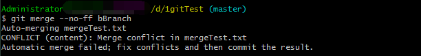本地库中两个不同分支,修改同一个文件同一代码块,两分支先后将修改合并到master分支上,master在合并第二个分支代码时,报错:合并冲突。