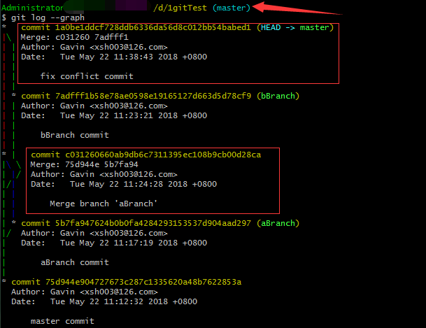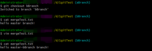 合并aBranch分支(将aBranch分支合并到当前master分支上):