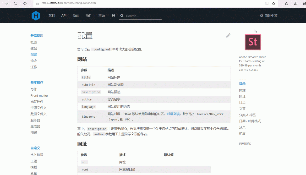 Hexo 官方文档 ,Hexo配置文件(_config.yml )文档里有,不废话自己看着配置,我会发一张图片。文档里面真的很棒,以前我在弄的时候没找到,写这篇博客才发现(哭?),