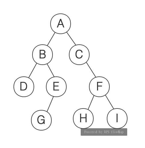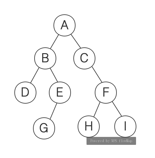 在中序中,得出结点DBGE在A左支上,CHFI在A的右支上