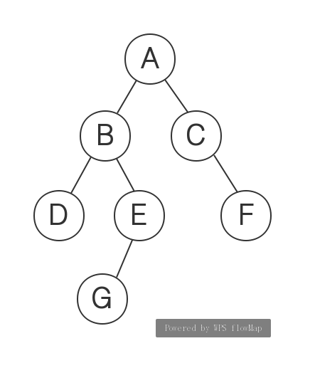 在中序中,结点GE的排序为GE,因此G在E的左支上,由此绘出G的位置
