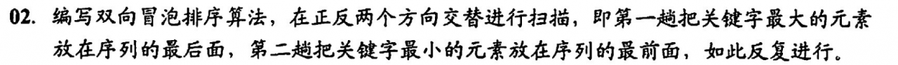 从后往前两两比较相邻元素的值,若为逆序,则交换,直到序列比较完