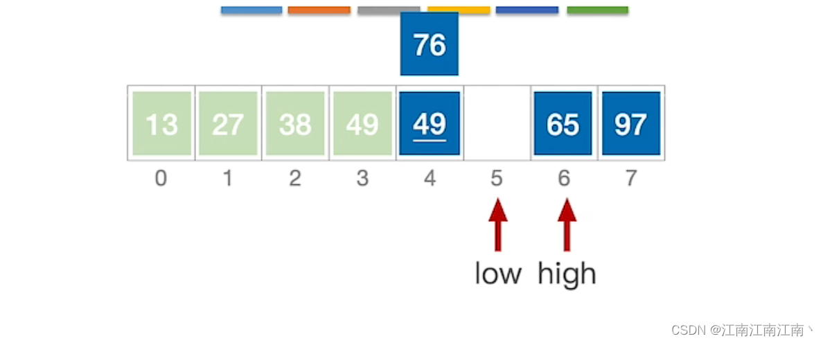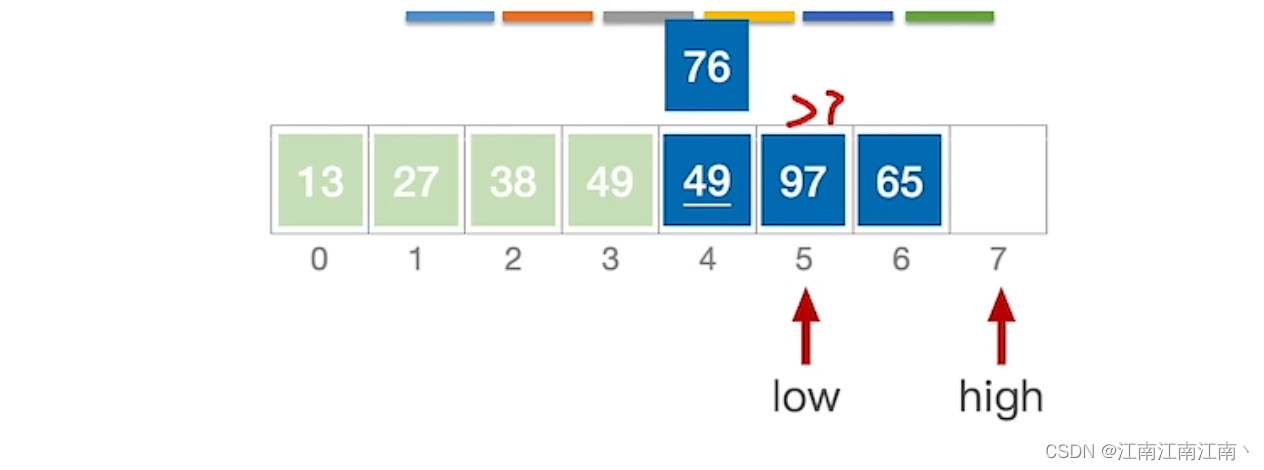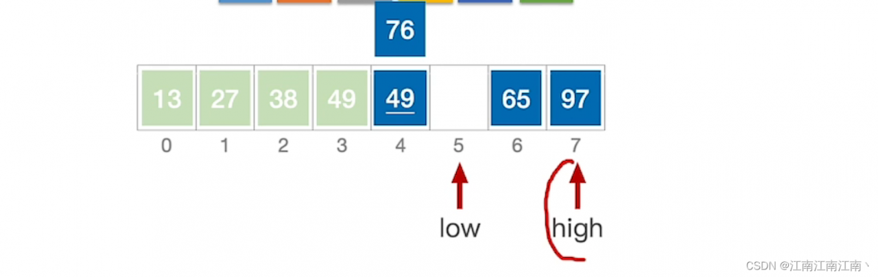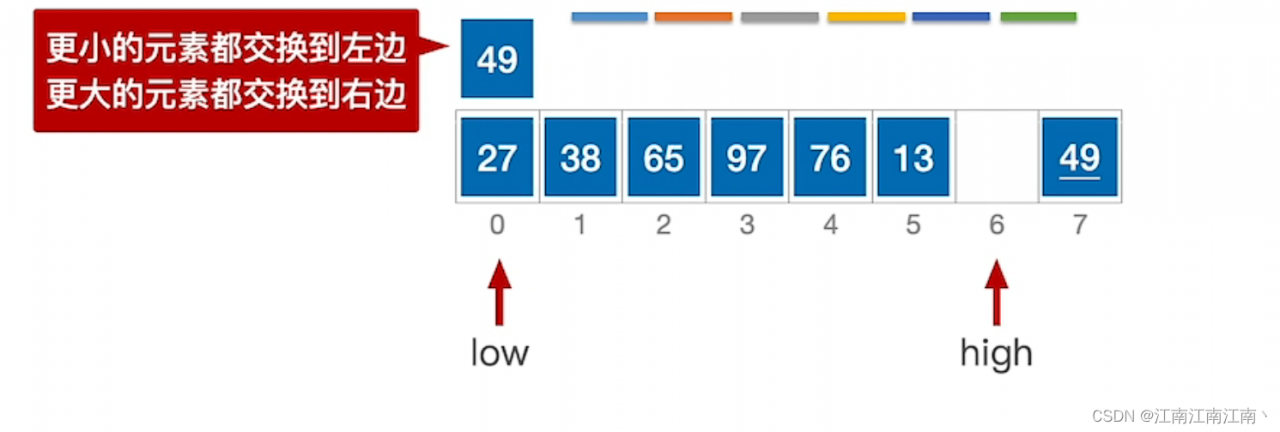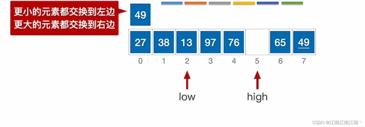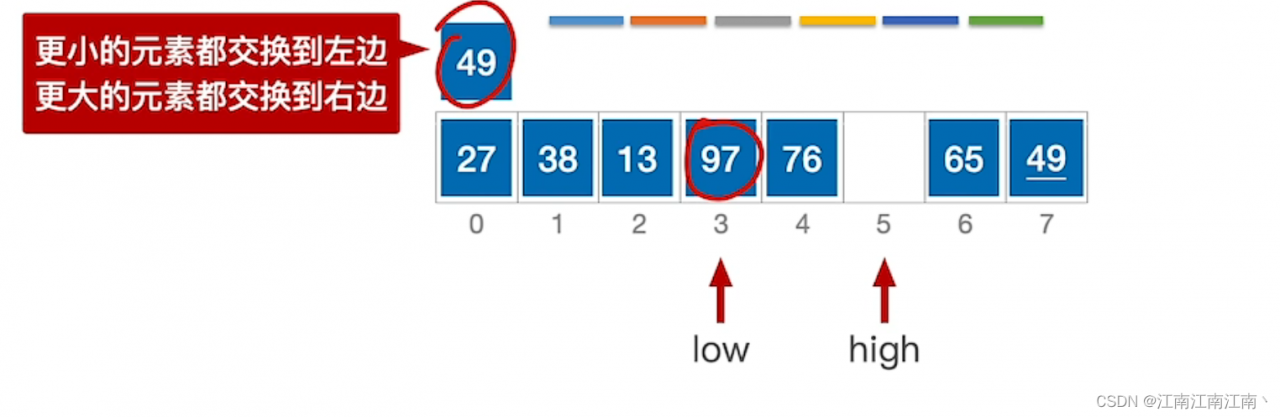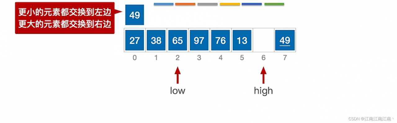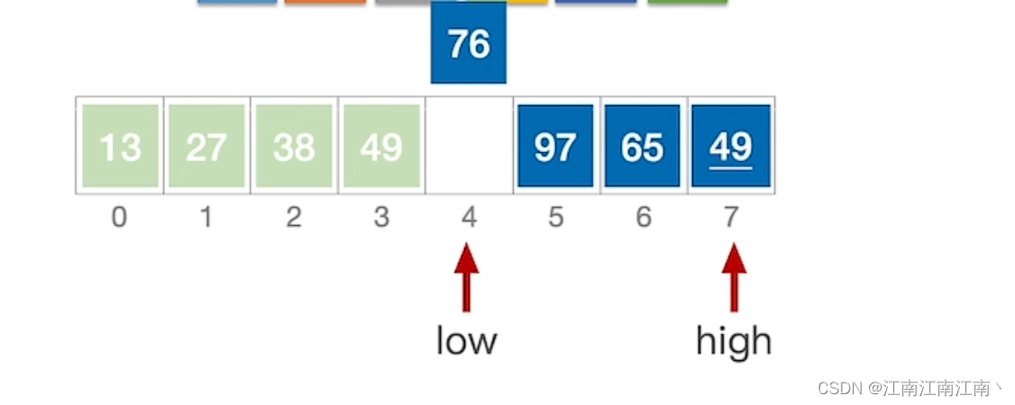 1.选取49为基准元素→low当前元素为空→high指向元素49 ≥ 基准元素49,不需要移动,high--