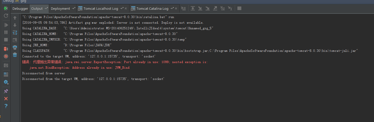代理抛出异常错误: java.rmi.server.ExportException: Port already in use: 1099