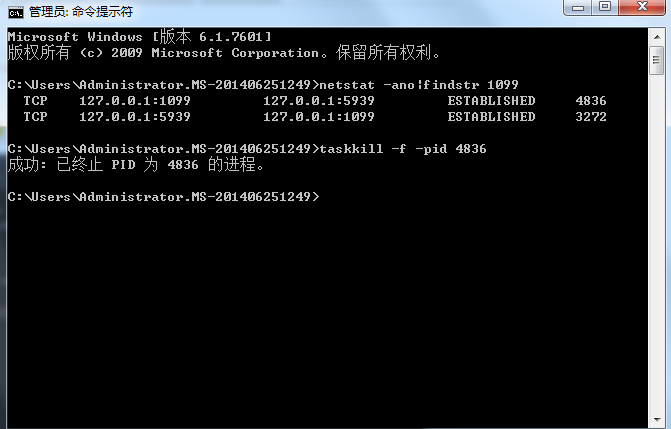 第二步: taskkill -f -pid 4836