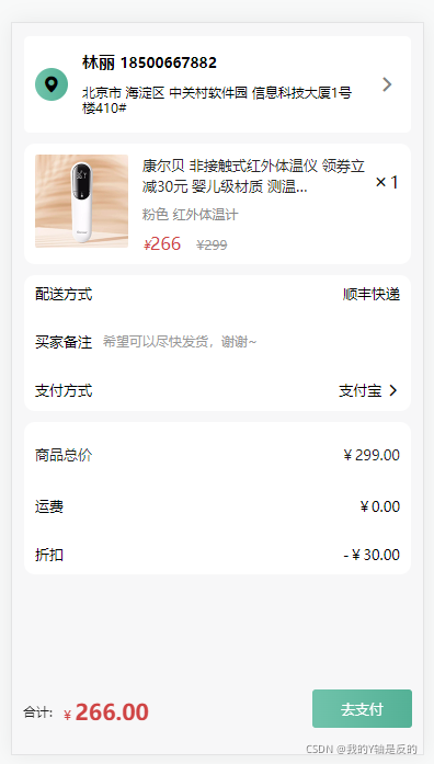 <div> <i>¥</i>266<span><s>¥299</s></span></div>