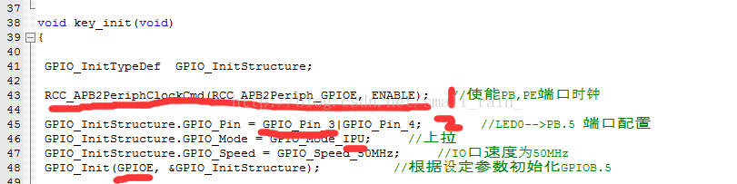 (1)我们需要在led.c的文件中初始化GPIOE3的按键
