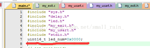 所以我们需要在串口的文件中调用,需要在main函数的开始声明,才可以在整个文件中使用