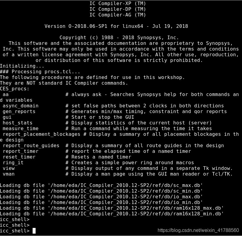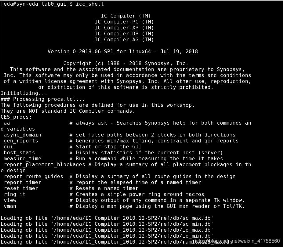 UNIX$ icc_shell 此时xterm UNIX提示符变成 icc_shell >,IC Compiler shell命令提示符。