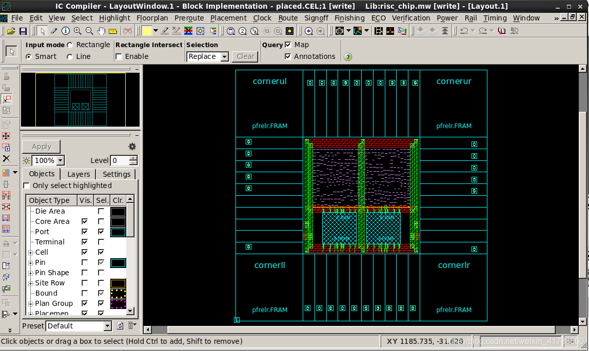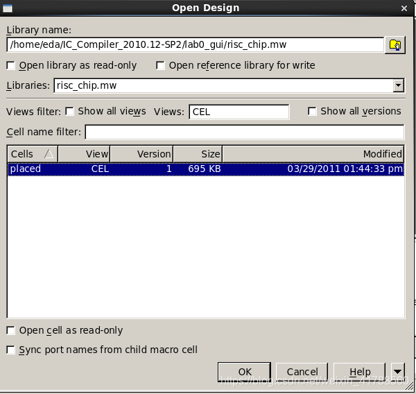 (7)从risc_chip MilkyWay设计库加载放置的单元格。如下: