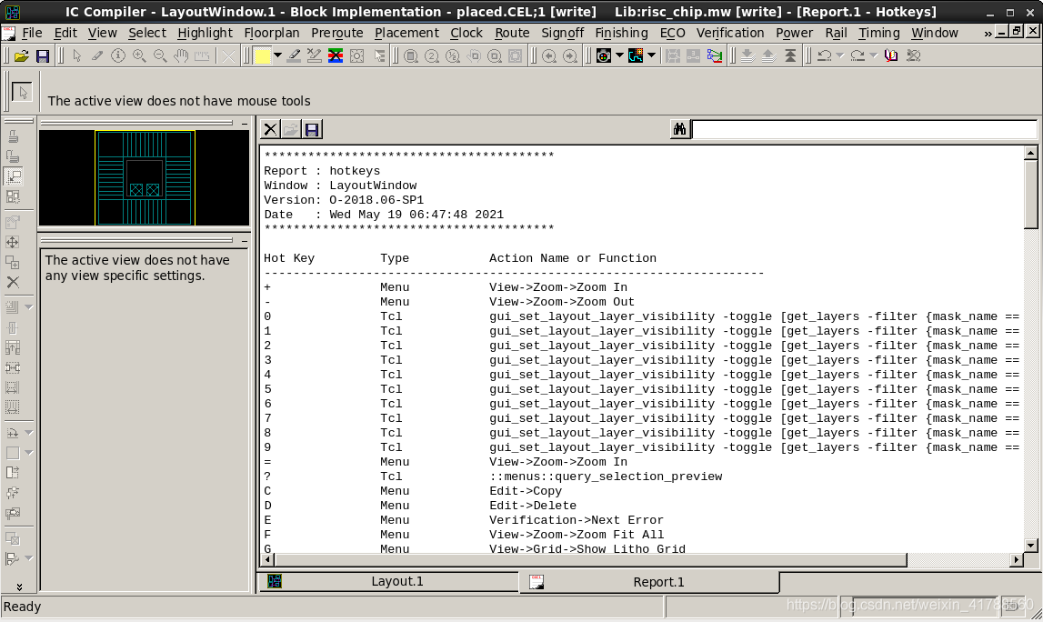 (2)当布局窗口LayoutWindow激活时(即当前选中),也可以使用“Hot keys”。例如,小写[F]或[Ctrl F]都对应于“缩放至适合所有”(或全图)。[Z]是放大。