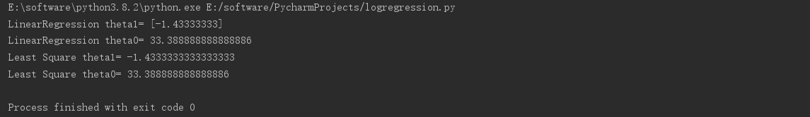 返回值是newX矩阵中每行数据所对应的结果。如果是1,则表示passed;如果是0,则表示unpassed - 获得模型参数值