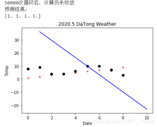 线性回归主要都是针对训练数据和计算结果均为数值的情形。而在本例中,结果不是数值而是某种分类:这里分成日期和最低气温两类。而且发现,两类并不显示有明显的分界线。这进一步说明最高气温的影响因素不是日期和最低气温。