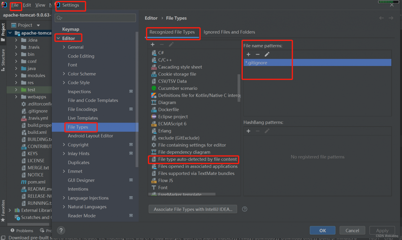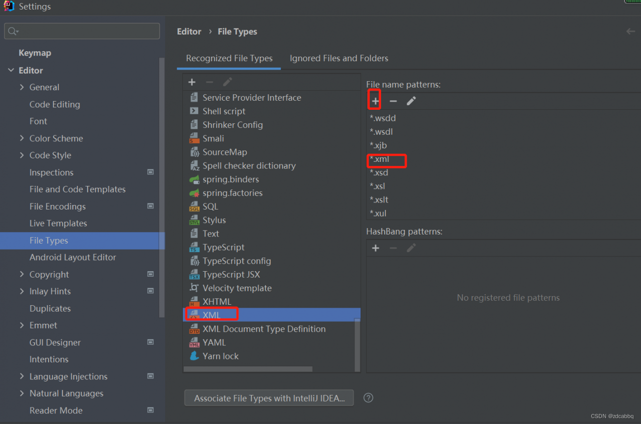 1. 打开idea 的 File->Settings->Editor->File Types