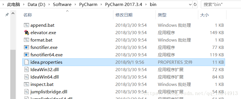 首先找到pycharm的安装路径,找到对应bin文件夹中的idea.properties文件。