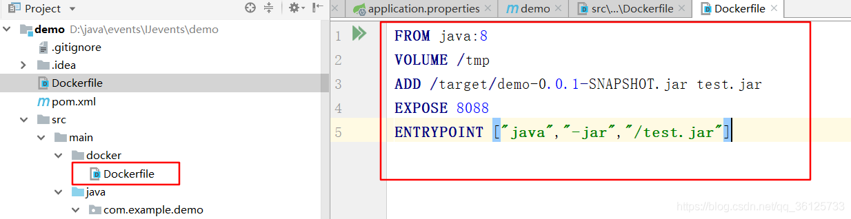 在java项目中的根目录下创建Dockerfile文件
