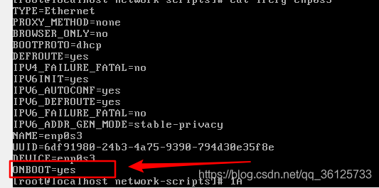 然后设置设置 /ect/sysconfig/network-scripts/ifcfg-enp0s3 将其中的ONBOOT设置成yes