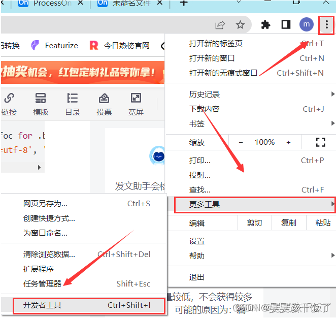 这时我们随便点击一个网页,找到开发者工具: