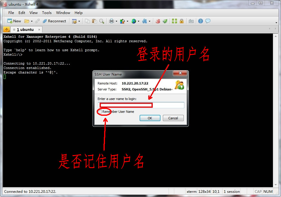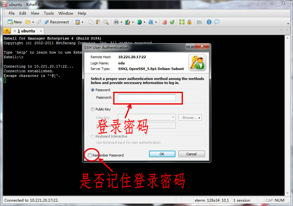 由于xshell远程连接ubuntu是通过ssh协议的,所以,需要给ubuntu安装ssh服务器。