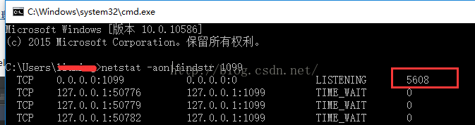 1. cmd --->>>> netstat -aon|findstr 1099 如下图: