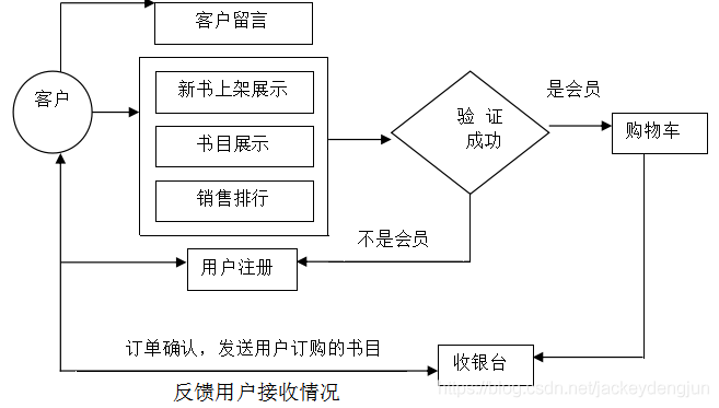 系统设计主要是对该系统急性系统目标的射击以及系统功能的设计和系统功能结构的设计,包括树城前台、图书商城后台,另外还有业务流程图包括客户端流程图和管理员流程图。