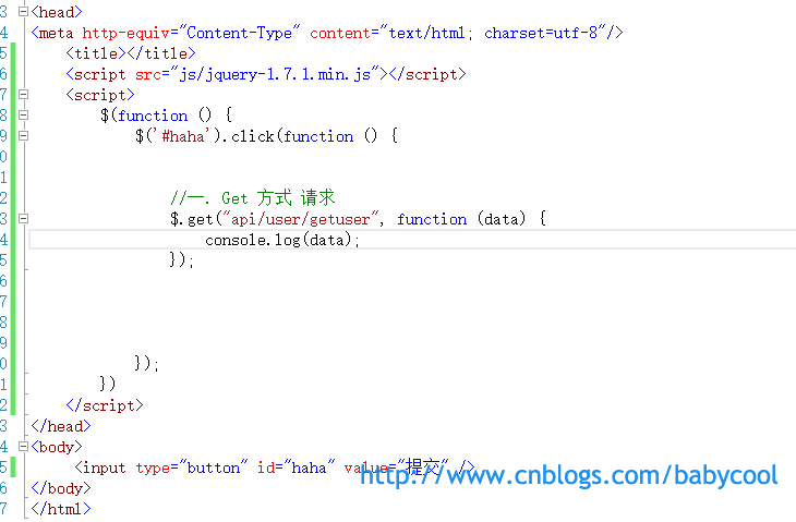 继续使用上一文章中的示例,添加一个index.html页面,添加对jquery的引用。