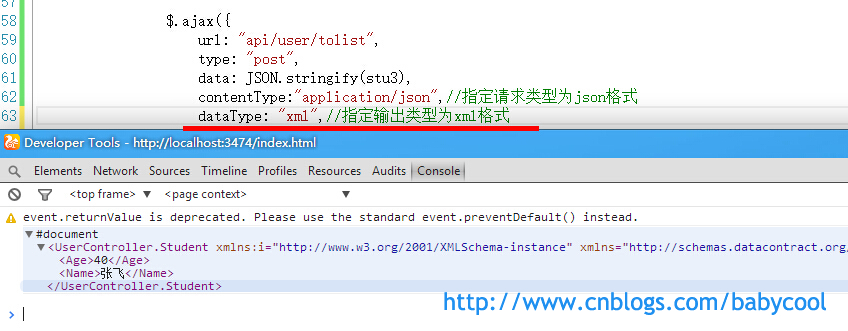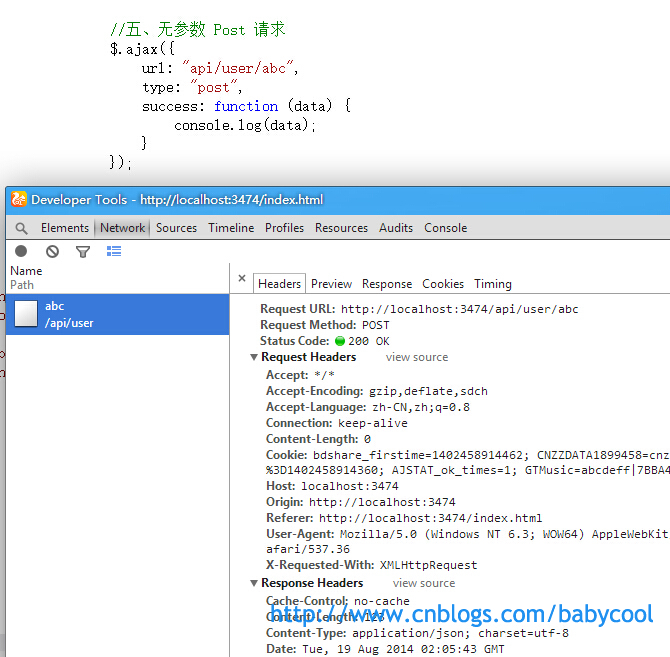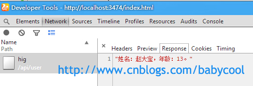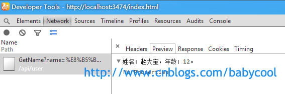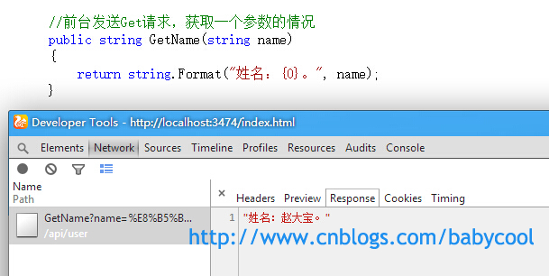 请求的后台Action方法仍为上篇文章中的GetUser() :