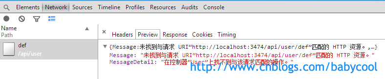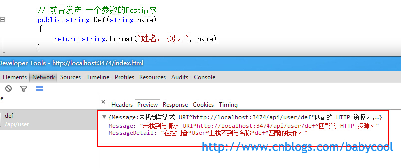 也就是说,Web API接收到的请求能够找到User控制器,但在该控制器中找不到名称为Def 的这个Action。