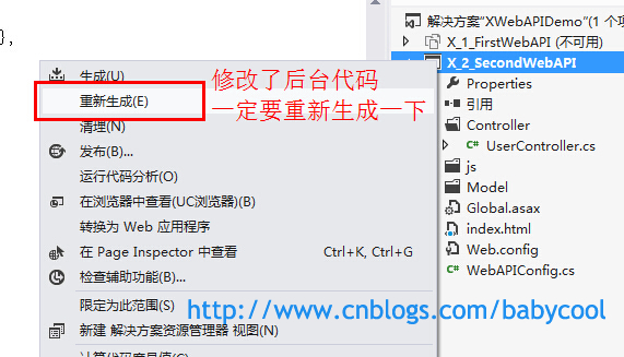 所以,我们只要我们修改了后台代码,就一定要重新生成一下: