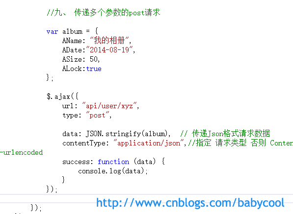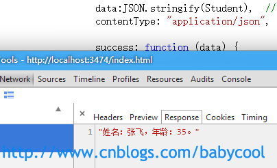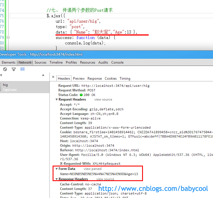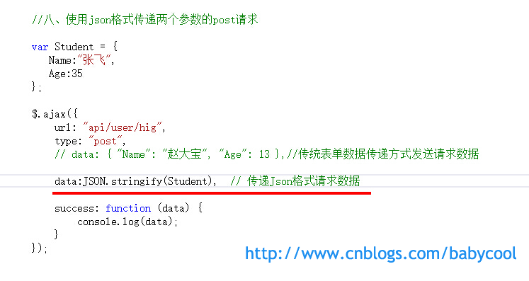 按照上面的方法,对于多个参数我们可以很容易就写出来:data:{"name":"赵大宝","age":12}