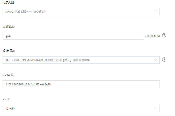 首先,我们需要先对域名的ipv6解析功能进行设置,这里需要将域名指向ipv6地址