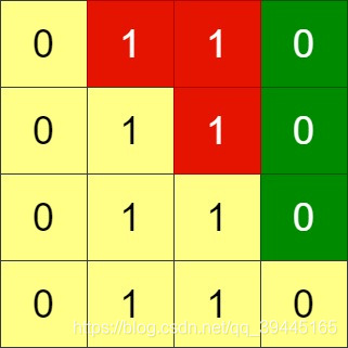 输入:grid = [[0,1,1,0],[0,1,1,0],[0,1,1,0],[0,1,1,0]]
