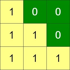 输入:grid = [[1,0,0],[1,1,0],[1,1,1]]