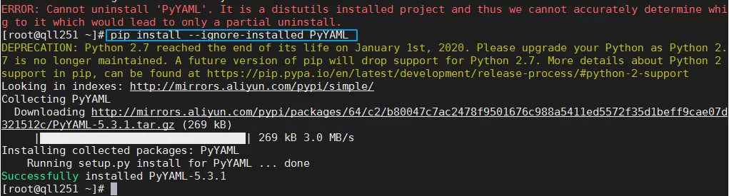 [root@qll251 ~]# pip install --ignore-installed PyYAML
