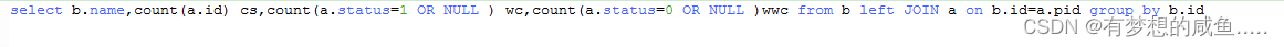 原因: 如果当 条件不满足时 count里面 是false 是false 他也会统计上 只有除了null值的不会被统计其他都会被统计 所以我们加上逻辑判断 or null 如果不满足就为null 为null就不会统计到count里面