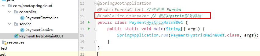 @EnableCircuitBreaker //激活Hystrix服务降级