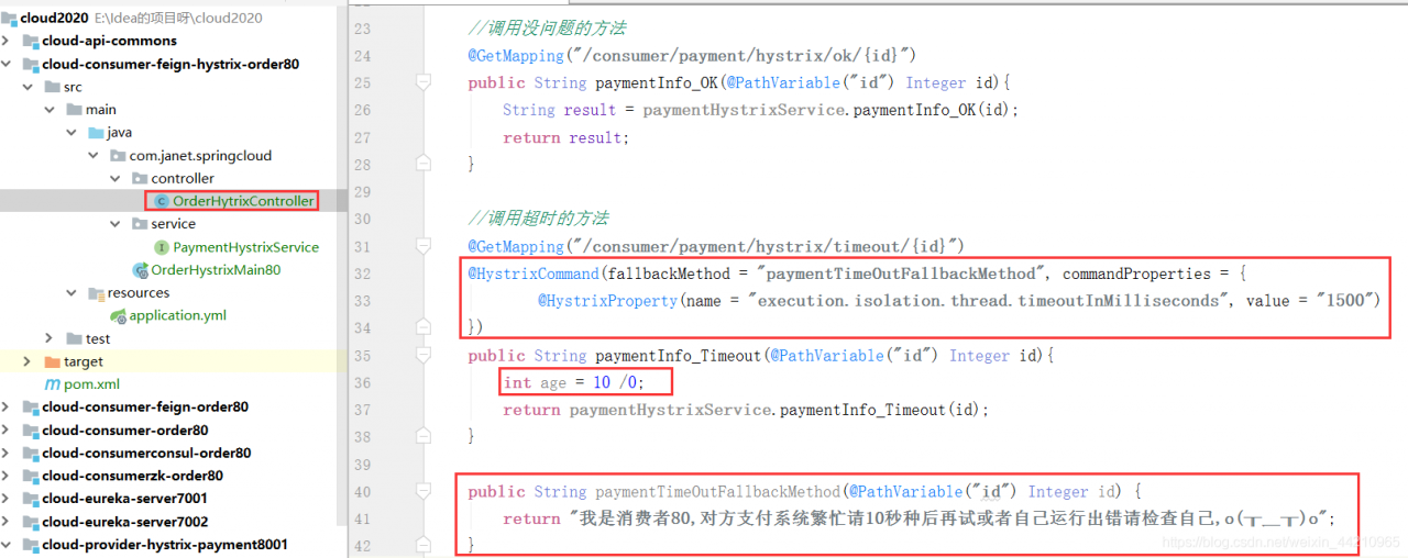 对于这一问题,hystrix 也为我们实现了 自动恢复功能。当断路器打开,对主逻辑进行熔断之后,hystrix 会启动一 个休眠时间窗,在这个时间窗内,降级逻辑是临时的成为主逻辑,当休眠时间窗到期,断路器将进入半开状态,释放一次请求到原来的主逻辑上,如果此次请求正常返回,那么断路器将继续闭合,主逻辑恢复,如果这次请求依然有问题,断路器继续进入打开状态,休眠时间窗重新计时。