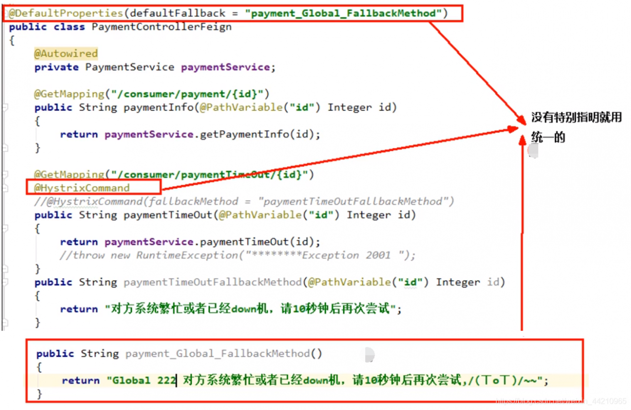类比保险丝达到最大服务访问后,直接拒绝访问,拉闸限电,然后调用服务降级的方法并返回友好提示。