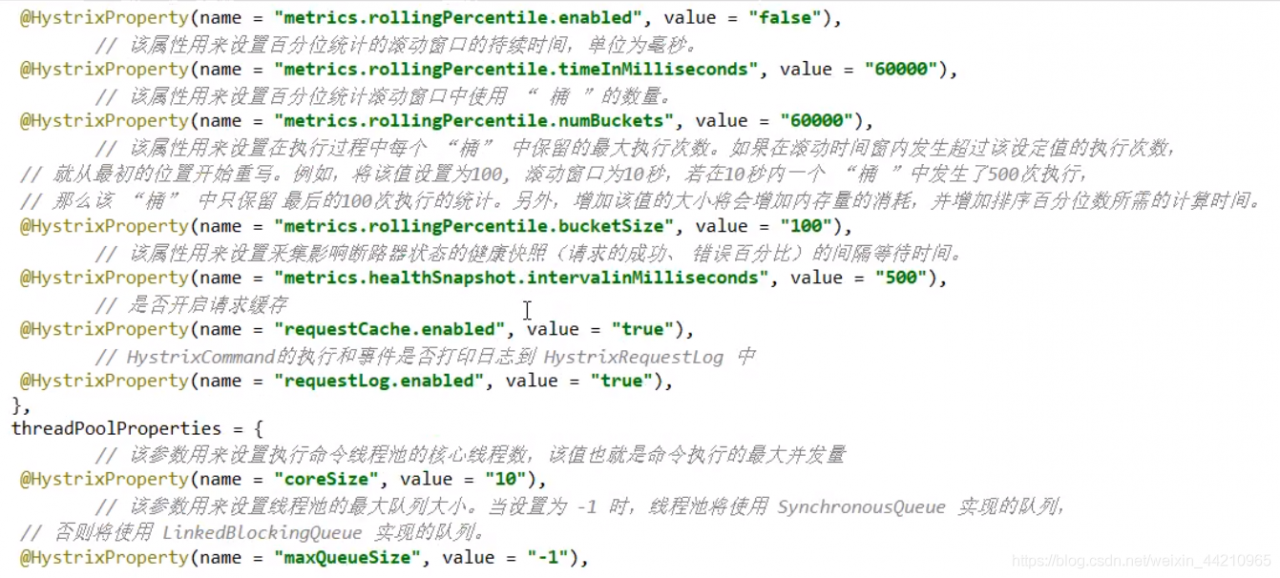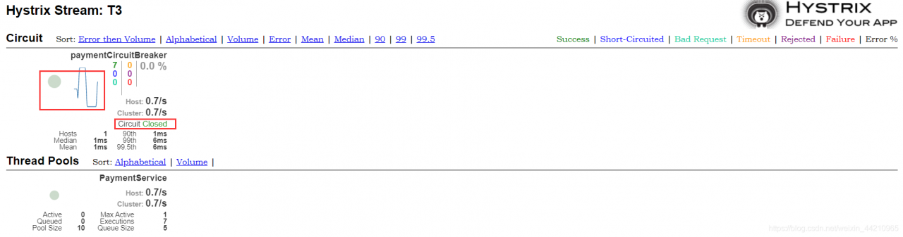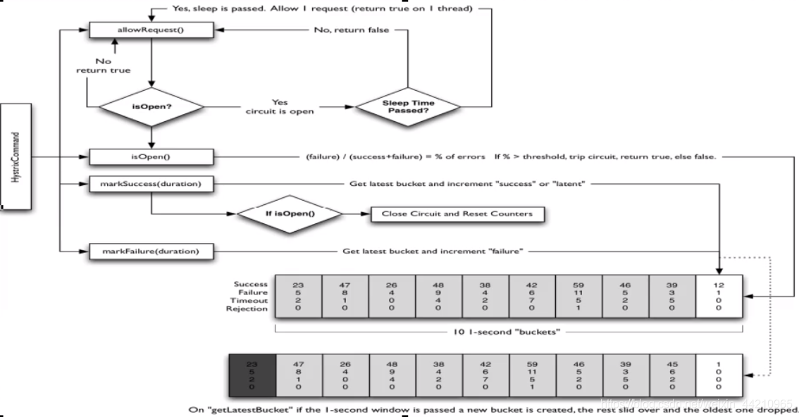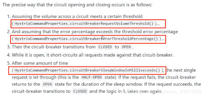 涉及到断路器的三个重要参数:快照时间窗、请求总数阀值、错误百分比阀值。