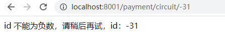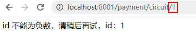 如果一直用负数测试,错误率上升(这里设置的是 60%)之后,服务熔断,就算是正数正确的也不能正常访问了。然后再测试,多次正确,正确率上升以后慢慢就可以正常访问了。