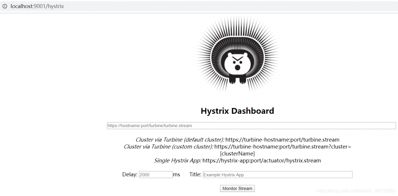 ⑥ 启动 cloud-consumer-hystrix-dashboard9001该微服务后续将监控微服务8001:http://localhost:9001/hystrix